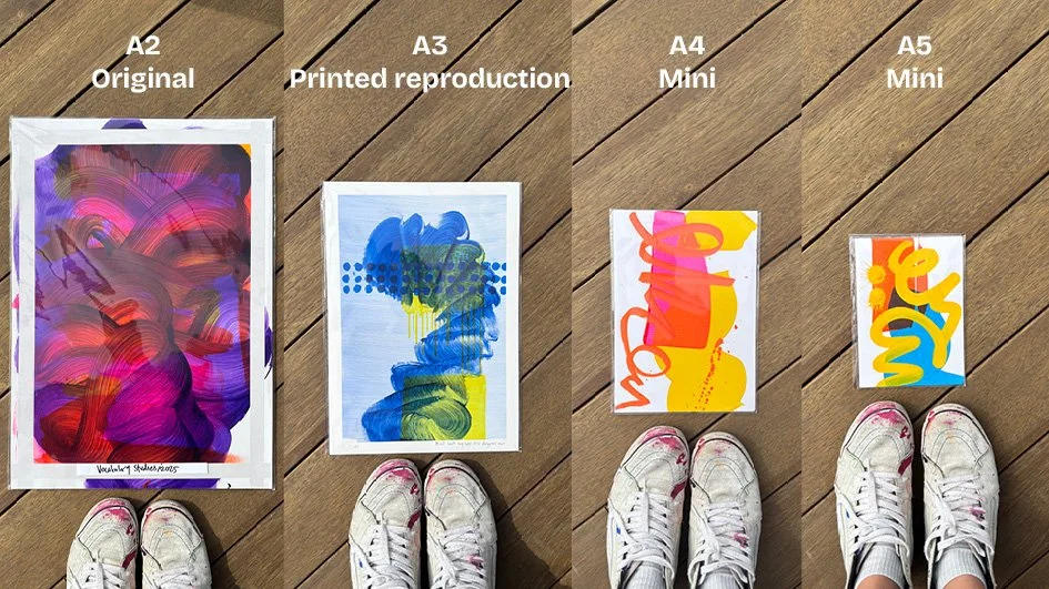 I thought it might be useful to write a little note about sizing, mainly because I would find it helpful if it weren’t for the occupational hazard of already being intimately acquainted with paper sizes. Whenever I am considering buying art online, even for me it can be a struggle to imagine the correct size. I am very much a visual person (obvs haha) and appreciate a visual reference, so here we go.
